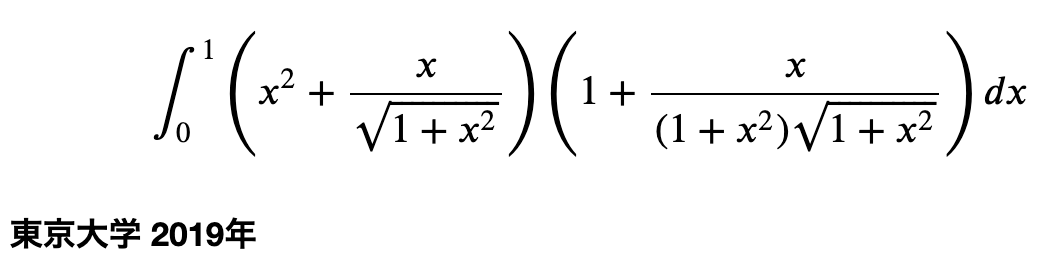 f = (x**2+x/sympy.sqrt(1+x**2))*(1+x/((1+x**2)*sympy.sqrt(1+x**2))) F = sympy.integrate(f , (x,0,1)) print(F)