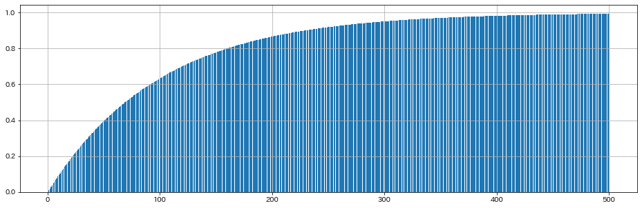 500回引いた際の当たる確率のシミュレーションです。