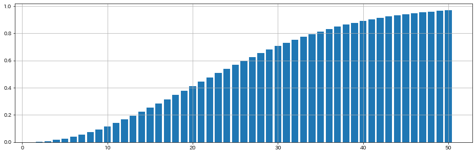 50人までの確率を調べてみましょう。