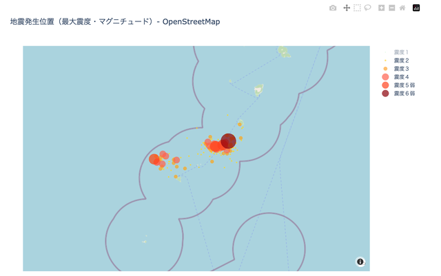 title='地震発生位置(最大震度・マグニチュード)- OpenStreetMap',